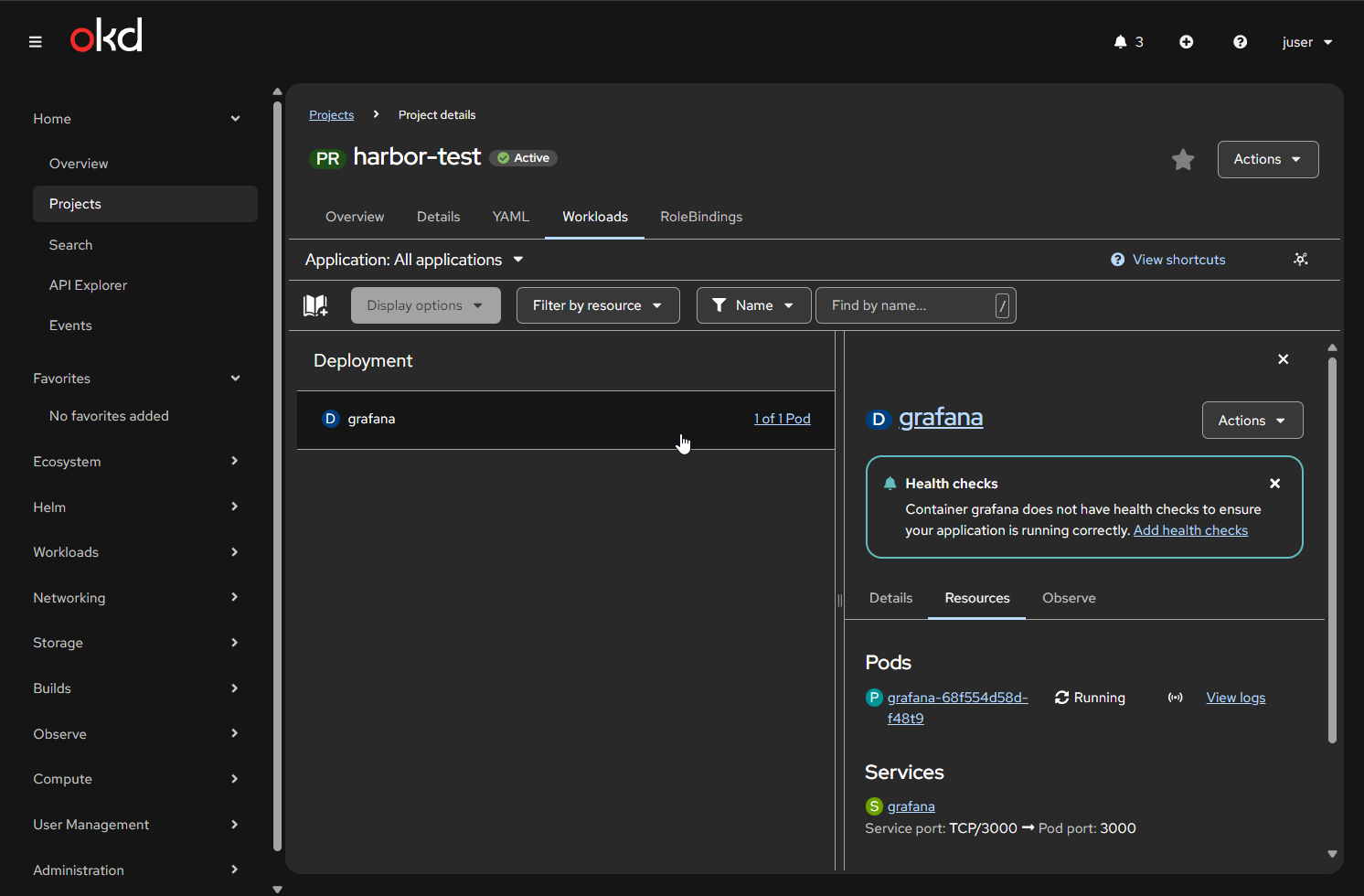 oc project harbor-test