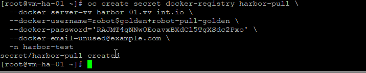 oc create secret docker-registry harbor-pull \